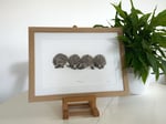 A row of darling baby hoglets, signed and titled by the artist and professionally finished in a natural wood frame.