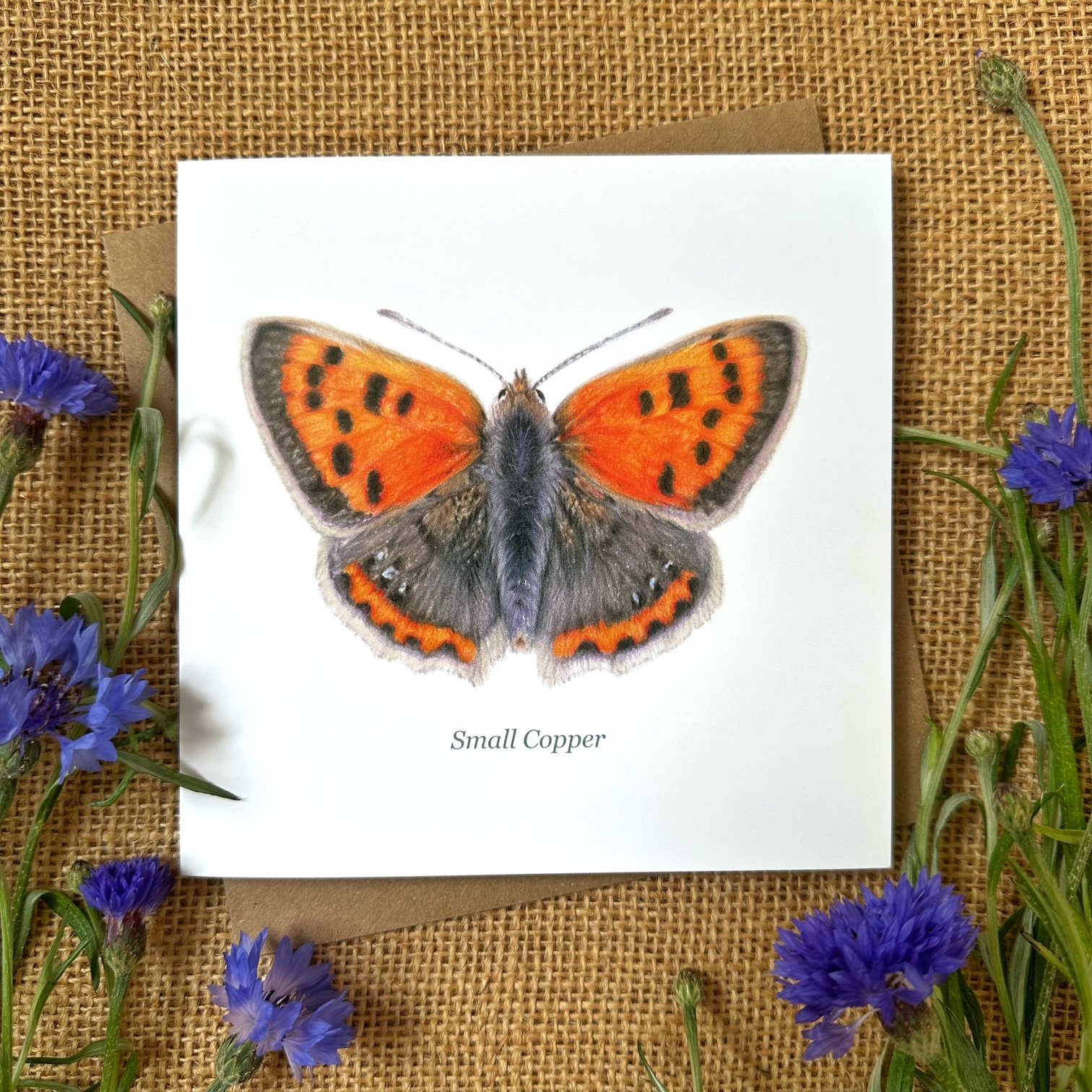 15x15cm greetings card featuring Small Copper butterfly design.
